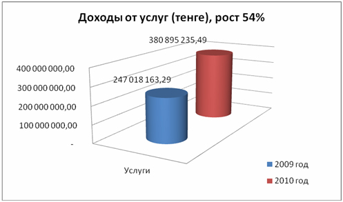 Товарооборот в денежном выражении в 2010 году составил 9 811 870 тыс. тенге, что по сравнению с 2009 годом больше на 3 583 455 тыс. тенге.